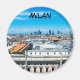 Pintura do horizonte de Milão com arranha-céus modernos no distrito financeiro de Porto Nuovo e estátuas de pedra da Catedral de Duomo.