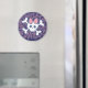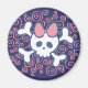 Crânio de desenho animado e emblema pirata de uma garota bonita, com arco rosa grande e fundo de linha cintilante. Doce e molho, t-shirts, suores, cartas, presentes.