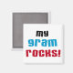 Minhas camisas Gram Rocks, cartões, adesivos, sacos para totas, ímãs, botões e outros itens com um design de texto preto, azul e vermelho. Estes itens da minha avó Rocks são uma forma excelente de mostrar o seu amor pelo seu programa especial!