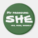 Avise às pessoas que os pronomes certos para usar para você são ela, ela, ela e ela mesma. (Sinta-se livre para mudar as cores personalizando o produto. Você pode alterar a cor do plano de fundo clicando em "editar" e em "plano de fundo". Escolhi verde porque é uma cor neutra do ponto de vista do gênero e nas bandeiras do gênero e da neutrois.)