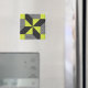 Não só para celeiros. Decorar com este mini celeiro bloqueando a colcha de cobertura "Clay's Choice", bloqueando o íman na sua geladeira. Bloqueio tradicional de solteiro em preto de carvão e cinzas acentuado com amarelo. Muitos mais ímãs com padrões de blocos de colcha disponíveis para coletar no compro Patchpourri na Zazzle.