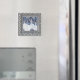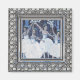 Bonito ímã quadrado, com a pintura acrílica de Maria Egilsson intitulada Valsa dos Flocos de Neve, colocada em uma armação prateada cortada.