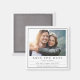 Ímã de Salvar Data Preto Branco com Foto Minimal Moderna apresenta um anúncio de casamento simples e moderno com sua foto favorita no topo e o texto "Salvar Data" em tipografia moderna e negrito. Abaixo, adicione seus nomes, local do casamento, data do casamento e informações adicionais, como "convite formal a seguir". Criado por Evco Studio www.zazzle.com/store/evcostudio