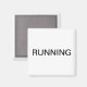 Um imã mínimo da cozinha da máquina de lavar louça "correndo" com um simples pano de fundo branco, ajudando você com a organização da cozinha. Personalize com o seu texto.