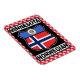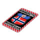Minnesotan American Magnet. Um design ao estilo de um clássico sinal de estrada dos EUA, combinando as bandeiras da Noruega e Minnesota num escudo.
