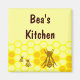 Mel Bee Honeycomb ímã de cozinha personalizável com arte de abelhas zunindo em um pente de mel com mel de ouro.