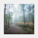 Esta foto mostra um caminho através de uma madeira escura de neblina em Norfolk, Reino Unido.