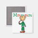 Um design de camiseta de Natal com uma figura de palitos, uma criança comendo uma cana doce e um texto vermelho e verde que diz "Mmmm".