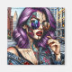 Imã Moça Abstrato Bonito Colorida com Cabelo Roxo