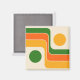 A dynamic abstract composition featuring two bold circles—one yellow, one green—linked by three flowing bands in green, orange and yellow. Each stripe is bordered by crisp lines, curving gracefully across a soft beige background. The interplay of shape and color evokes 1970s graphic design, balancing visual rhythm with sculptural simplicity. The result is a harmonious, retro-inspired piece that captures motion, contrast, and editorial clarity.