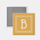 Adicione um toque de personalidade à sua geladeira, escritório em casa ou quarto com este ímã quadrado com uma inicial monogramada de uma única letra. O modelo fácil de usar permite criar sua própria letra personalizada colocada em um fundo amarelo dourado vibrante. Você pode personalizar ainda mais qualquer uma das cores na área da ferramenta de design. O design fofo é simples e básico com dois quadros quadrados em torno da inicial. Se você quer soletrar seu nome, iniciais ou uma palavra, este ímã é uma maneira única e divertida de se expressar. Este ímã também é um ótimo presente para ele ou ela, para qualquer ocasião.