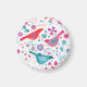 Pássaros aquosos modernos e contemporâneos e padrão de flores em verde-lacrimogêneo, rosa magenta e vermelho sobre fundo branco. Arte original de Nic Squirrell.