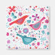 Pássaros aquosos modernos e contemporâneos e padrão de flores em verde-lacrimogêneo, rosa magenta e vermelho sobre fundo branco. Arte original de Nic Squirrell.