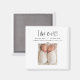 Two cute graphic twin photo birth announcement magnet. Modern graphic fun chic marker pen typography design. Natural tan brown backer color can be changed and is available in a variety of colors.