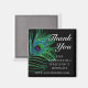 Moderno Glitter Feather Bho Chic Obrigado Promocional para Pequenas Empresas Magnet apresenta penas de pavão em verde, azul e roxo em um fundo preto com o texto "Obrigado" em elegante e moderna escrita branca de caligrafia. Todas as cores de texto e fundo são personalizáveis. Personalize editando o texto na caixa de texto fornecida. Projetado pelo Evco Studio https://www.zazzle.com/store/evcostudio