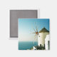Imagem em forma de aquarela de um moinho de vento na borda da caldeira em Oia, na ilha grega de Santorini