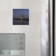 Fotoímã de Souvenir com moinhos de vento iluminados e históricos, com reflexo na água do rio durante a Hora Azul no início da noite em Kinderdijk, nos Países Baixos.