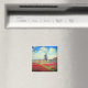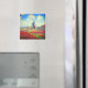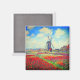 Magnet com pintura de Claude Monet em flores e moinhos de vento. Lindos e coloridos campos de tulipas vermelhas, cor-de-rosa e amarelas ao lado de um moinho de vento e casa na Holanda. Um presente de Monet excelente para fãs do impressionismo e da arte francesa.