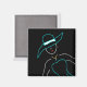 Um esboço divertido de uma jovem sassenta num chapéu azul e vestido em moda. Faz um ímã único e um presente de excelente para aqueles que amam moda e alta sociedade.