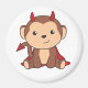 O macaco para o Halloween com um belo traje de diabo. Animais engraçados como um demônio fofo para o Halloween. Uma fantasia divertida de Halloween para bebês e crianças que amam macacos.