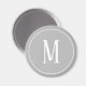 Um ímã redondo com um monograma branco sobre fundo de cinza. Personalize o ímã com suas iniciais ou iniciais, cores, entre outras opções.