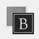 Imã Monograma clássico simples | Preto com texto branc