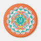 Um padrão de mandala floral macio e pastel em chalé e coral. Artista: Harriet Sussman