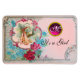 Design floral elegante, colorido e vibrante estilo vintage com um bebê e cegonha voadora entre o belo rosa romântico, rosas vermelhas, flores de primavera azul lacrimogêneo e uma brilhante pedra gemônica 3D de Búlgaro Lumini (c).Fácil de personalizar com seu próprio texto e incitais para chás de fraldas, festas de aniversário de criança ou praticamente qualquer evento que você deseje!