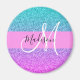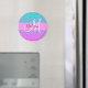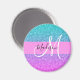 Girly and glam purple, lilac, aqua e turquesa mermaid glitter brilham o nome do monograma do gradiente e o ímã inicial. Seu nome personalizado e monograma são escritos em um elegante roteiro escrito à mão com um fundo rosa. Um aniversário perfeito ou presente de Natal!