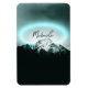 Monograma de luz azul misterioso da montanha nevada. Composição digital da minha fotografia de uma montanha magnífica Storžič, na Eslovênia. Adicionei uma luz neon em volta da montanha em Photoshop para criar uma paisagem misteriosa.