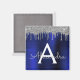 Ímã de festa com monograma de metal escovado e brilho metálico prateado e azul marinho. Isso faz o presente perfeito para aniversário de sweet 16, casamento, chá de noiva, aniversário de casamento, chá de bebê ou despedida de solteira para alguém que ama luxo glamoroso e estilos chiques.