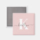 Este simples e elegante ímã quadrado cor-de-rosa-2" com o seu primeiro nome numa letra de texto de tendência em cinza e o seu primeiro início numa fonte moderna de boné em branco é perfeito para si. É na moda e moda e, no entanto, muito clássico. Ficará fabuloso no seu armário, geladeira, escrivaninha.