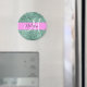 A cor-de-chic e a cor-de-vidro e a brilho verdes brilham o nome do monograma branco e o ímã inicial. Seu nome personalizado e monograma são escritos em um elegante roteiro escrito à mão com um fundo rosa. Você pode alterar a cor do texto, o estilo e o tamanho da fonte usando a opção personalizar. Um aniversário perfeito ou presente de Natal!
