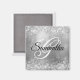 Brilhante brilhante cinza de cor com brilho com faíscas contra uma imagem gráfica colorida de folha metálica de metal com sombra de cinza prateada. O monograma de caligrafia branca e rico no centro pode ser personalizado. Todos os elementos brilhantes e brilhantes neste moderno design feminino são gráficos digitais. Um precioso personalizado com um ímã decorativo quadrado 2x2 para combinar com a decoração doméstica.