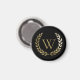 Este elegante ímã personalizado apresenta um falso monograma de ouro enquadrado com uma coroa dourada sobre um simples fundo preto. Desenhada por Susan Coffey.