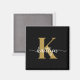 Este simples e elegante ímã preto de 2" quadrado com seu primeiro nome em uma letra de texto de tendência em branco e seu primeiro início em uma fonte moderna de boné em ouro é perfeito para você. É na moda e moda e, no entanto, muito clássico. Ficará fabuloso no seu armário, geladeira, escrivaninha.