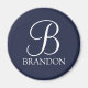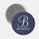 Imã Monograma e Nome de Script Personalizado Azul-mari