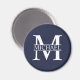Monograma personalizado e presentes de nome que apresentam monograma branco personalizado no estilo de letra serif clássico com caixa de nome no meio do monograma em fundo azul marinho.