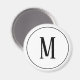 Um ímã redondo com um monograma preto sobre fundo branco. Personalize o ímã com suas iniciais ou iniciais, cores, entre outras opções.