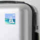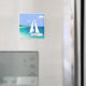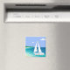 Monograma Sailboat Tropical Beach Magnet. Um veleiro com seu nome, se aproximando de uma praia. Vista do mar tropical. Azul, lacrimejo, espuma marinha, turquesa, verde, branco.