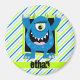Monstro legal e colorido de criança, ciclomotores azuis com chifres verdes, verde neon, design de tema monstro em Neon Green, padrão de White Stripes. Presente perfeito para bebês, crianças, crianças, adolescentes ou adultos! Personalizado o modelo de design adicionando um nome de criança ou texto personalizado. Visite nossa loja, Festa de aniversário House, para mais produtos personalizáveis de excelente para garotos e meninas!