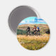 Uma aquarela de três homens pedalando nas colinas galesas.