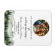 Uma elegante Imã salve a data de aniversário de casamento com montanhas de aquarelas e pinheiros e uma foto especial que você pode personalizar com seus detalhes.