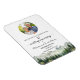 Uma elegante Imã salve a data de aniversário de casamento com montanhas de aquarelas e pinheiros e uma foto especial que você pode personalizar com seus detalhes.