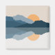 Abstrato de ilustração colorida do nascer do sol com montanhas azuis refletidas no lago