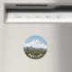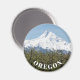 Magneta redonda, decorativa, que mostra uma imagem cênica de fotos de neve capturou Monte Hood e pomares de fruta no Vale do Hood, em Oregon. Selecione o tamanho do seu ímã. Faz um viagem de souvenir excelente!