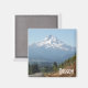 Imã de geladeira quadrada apresentando uma imagem cênica de neve capturou Monte Hood e o vale do rio Hood em Oregon. Faz um viagem de souvenir excelente!