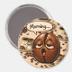 Magnet description give your kitchen a shot of humour with this hilarious morning sleepy coffee bean round magnet. We all know that pre-coffee feeling and this giant yawning coffee being character with his heavy tired eyes captures it perfectly featuring a detailed background of roasted beans and steaming espresso cups this magnet is the ultimate relatable accessory for your refrigerator office whiteboard or any magnetic s. It's a fantastic little gift for the coffee lover who isn't officially awake until the kettle has boiled