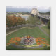 Um mosaico de flores do casaco de braços de Nijmegen. Ao fundo você pode ver a ponte sobre o rio Waal.