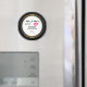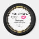 A wedding anniversary magnet with a modern design - glamorous pink kissy lips and a masculine retro-looking moustache illustration. Set on a black chalkboard background with a gold gradient circular frame in the center. Text says Mr. and Mrs. and you can personalize with your name and number of fabulous years together